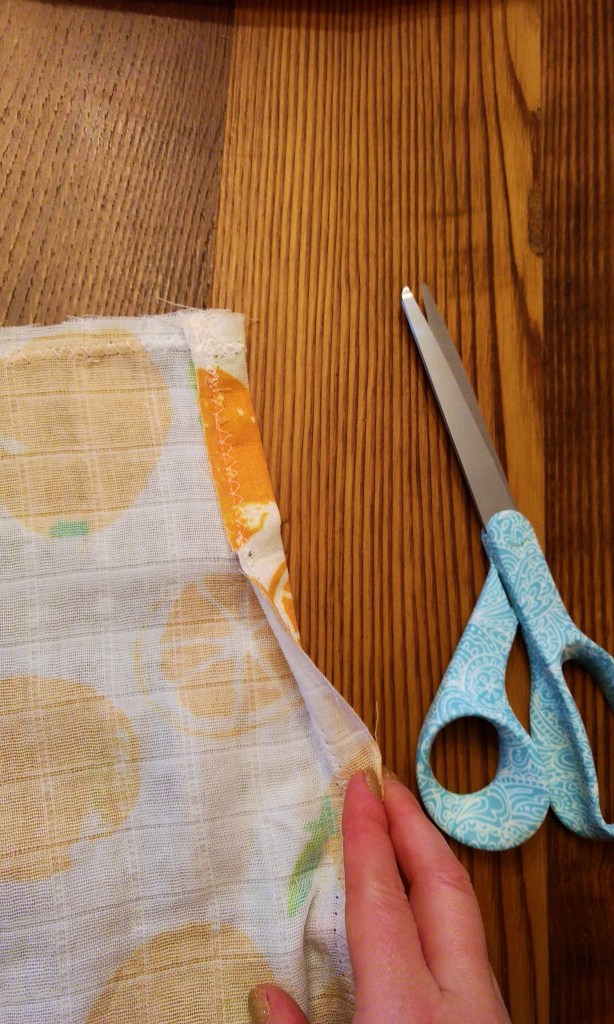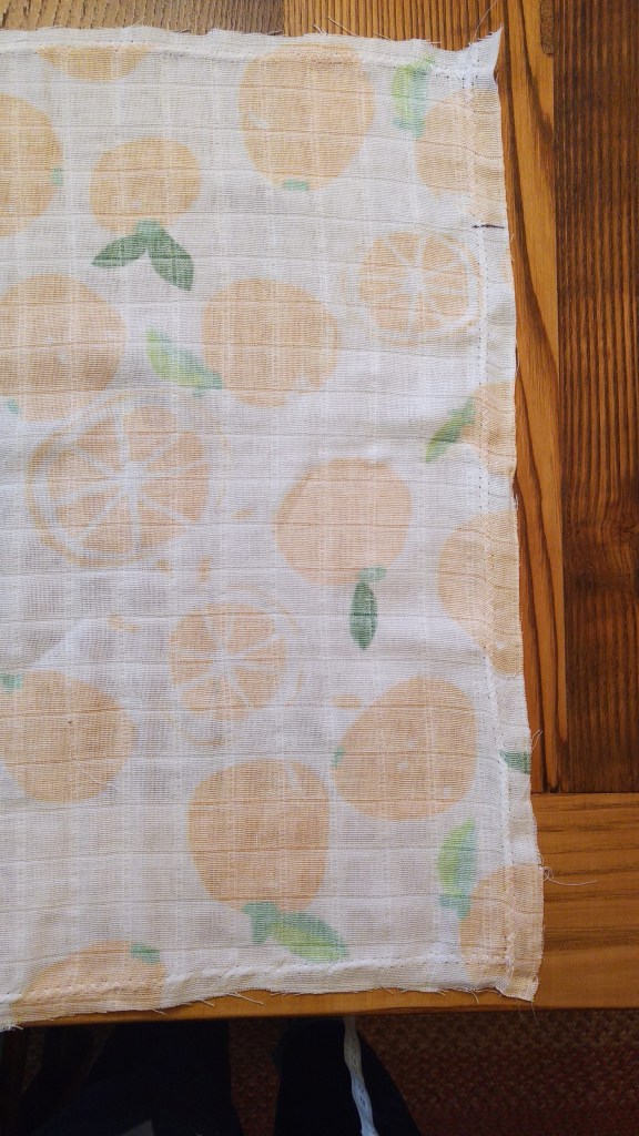 - Cut your yard of fabric into 4 rectangles. Zigzag stitch the edges.