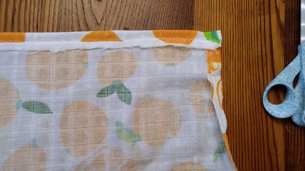 - 1 fat quarter of gauze per bag OR for a complete set of bags, you can cut one yard into four rectangles approximately 28” x 18” each. (I went with the 1 yard of fabric and bought the Organic Sweet Pea Gauze from Spoonflower. Here’s my orange pattern. I also ordered this blackberry fabric and this pineapple fabric. All are insanely cute. Since this was going to be touching my food, I liked the idea of using organic cotton but feel free to use what you can find or what you have. I acknowledge Spoonflower is not the cheapest material; I had a discount.)