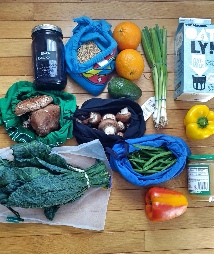 - Before heading to the grocery store, I always make sure I have my list, my reusable grocery bags and my reusable produce/bulk bags. A list prevents be from buying things I don’t need, which could lead to food waste. Bags prevent me from using the cheapy plastic ones at check out or in the produce area. Always be prepared!