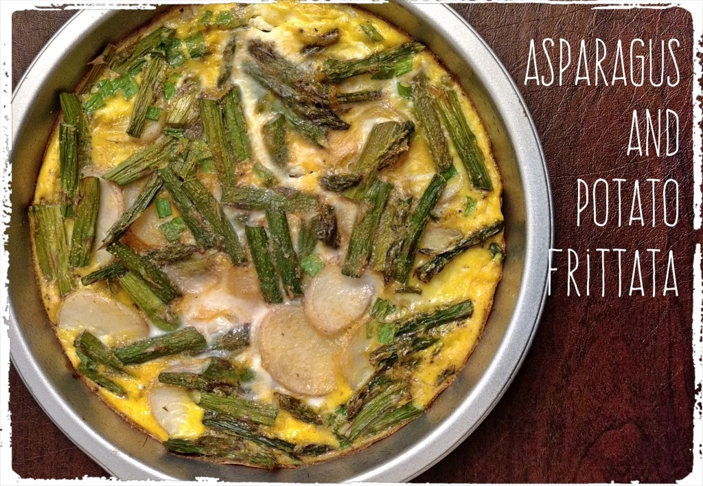 Asparagus and New Potato Frittata: I don’t have a recipe for this but I roasted a pound of asparagus for 20 minutes; steamed 4 new potatoes then sliced them thin; layered the asparagus and sliced potatoes in a pie dish and topped with 6 whisked eggs. Then I baked it at 350 for about 25 minutes, I think.