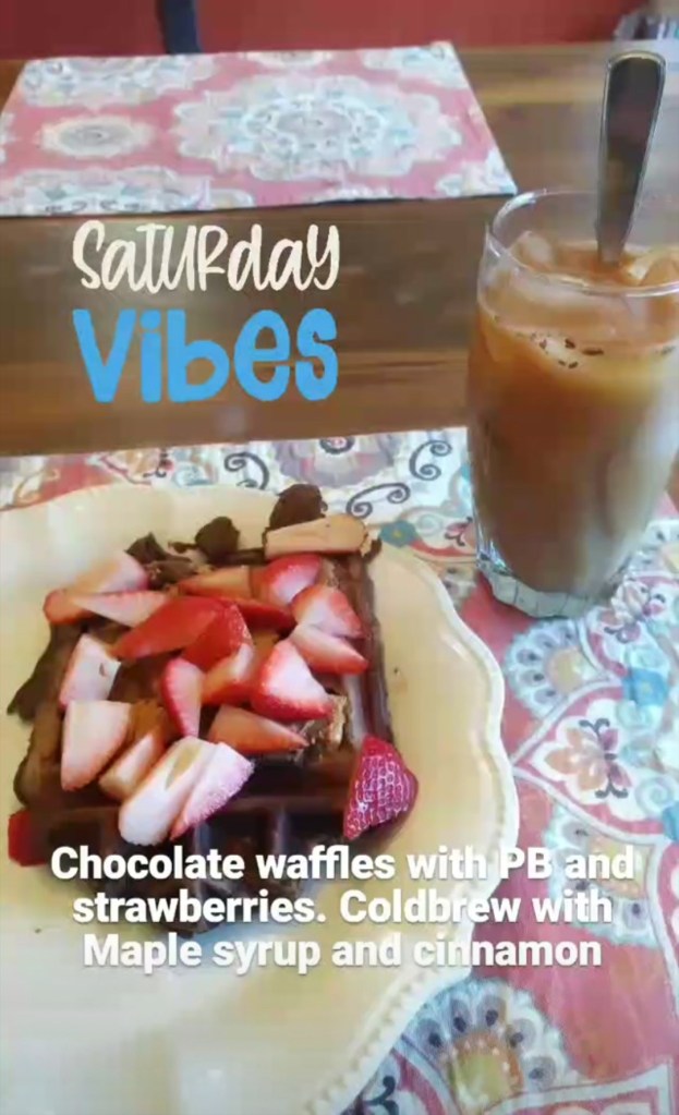 My go-to breakfast the past few weeks has been protein waffles. This is my favorite recipe. I’ve definitely posted it before but I play with the recipe constantly. This week, I added 1 TBSP unsweetened coconut powder + 1/2 tsp of coconut extract. I also added another 1/2 TBSP of almond milk so it wasn’t too dry with the added cocoa powder. They freeze really well so I like making a few at a time and popping them in the freezer. To eat them, I just reheat them in the toaster then top them with fruit and/or a nut butter.