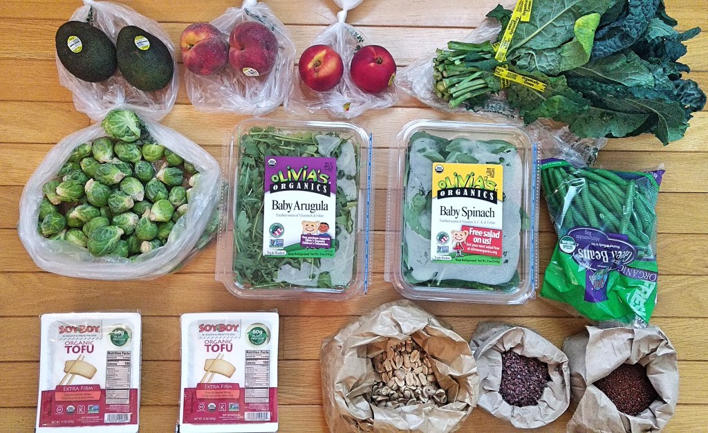 Here is my grocery haul this week. You will notice a lot of plastic. I debated posting this to my low-waste blog but that is the reality we are in right now. I am still supporting my small co-op, which is closed to shoppers. I send them my list and they shop for me. That means what I would normally put in a reusable produce bag (like the nectarines and plums) are getting put in plastic. Or items that I think are going to be in bulk (like green beans and spinach) actually come pre-packaged because of availability. BUT, I’m getting my dry goods like quinoa, peanuts and cacao nibs in bulk. I think it’s a trade off. I’m getting more plastic bags now but I’m voting with my money to keep my local co-op open. By continuing to shop there, despite it not being perfect, I’m saying that this is a store that is important to me and when everything opens again, I want to make sure it opens as well. I want the bulk bins and natural beauty products and organic produce to be there so for a short amount of time, I will take a few plastic bags. I don’t know if that is the right things to do for environmentalism but it feels right to me. Ok, now onto the food!!