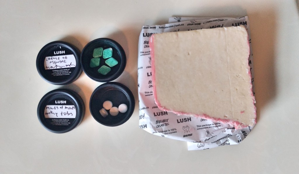 - The Greeench Deodorant Powder (no, that is not a typo) – If you’ve ventured into natural deodorants, you know that every body is different and you have to find what works for you. This didn’t work for me. I also found the powder application messy. Lush graciously let me return this and I learned about their samples policy. Their sample policy being, they like to give you samples so don’t hesitate to ask!