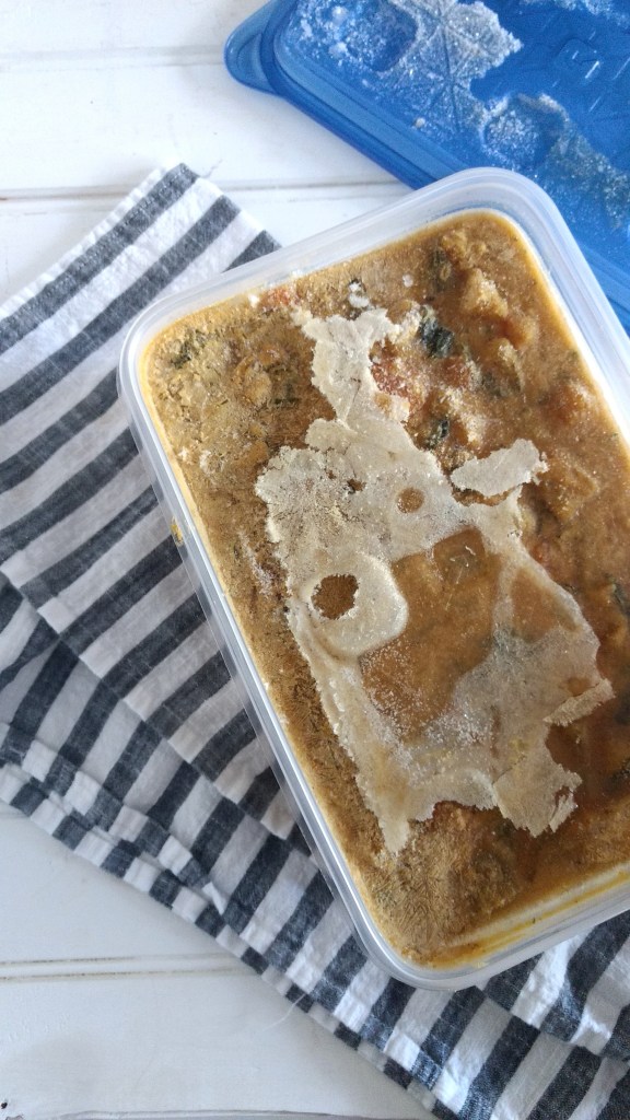 Dinner is leftover soup. The freezer is your best friend when you are making food for one. I had some leftover Detox Soup, which I will thaw out for the rest of the week. I know the frozen soup isn’t much to look at but I wanted to show you some short cuts you can take with meal prepping. Freezing batches of food, where possible, can help prevent you from getting sick of a meal, can save you time later on and help stretch a buck.