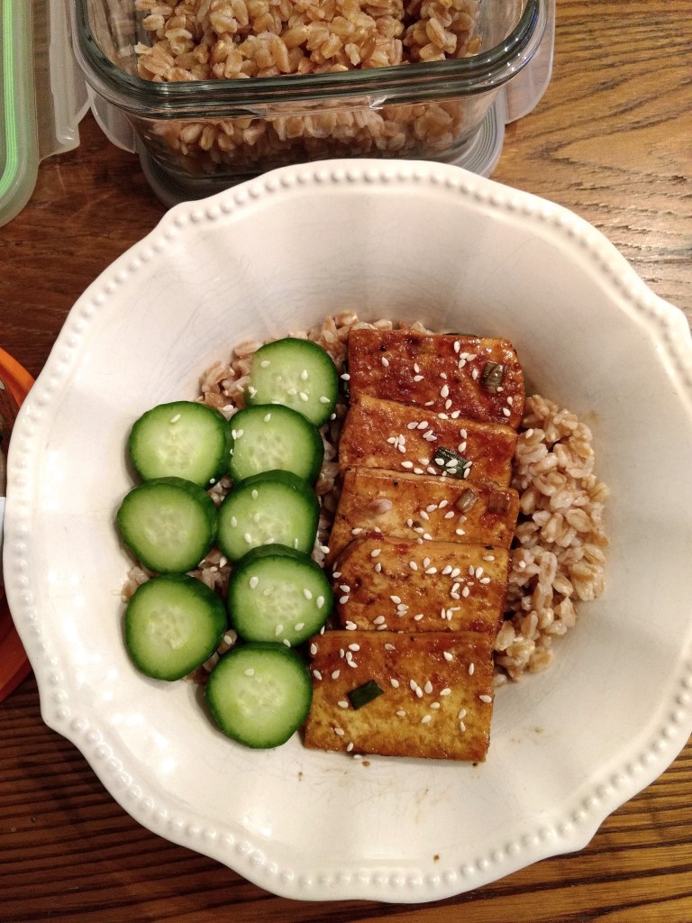 Dinner was found on the instagram account, Thriving on Plants (@thrivingonplants). I was planning something different but Cherie posted this pan fried tofu right before I went grocery shopping and I already had the tofu and ingredients for the sauce so I changed up my plan. The tofu is delicious! I did press mine because I prefer the texture. I also added the cornstarch, though I have to be honest, I didn’t think it made the tofu that crispy. I’d leave it off next time. I paired mine with cucumbers, like she showed, and farro instead of rice. I think next time, I’d add some avocado to the farro/cucumber mixture. The tofu is definitely the star of this if you want to pair it with something different.