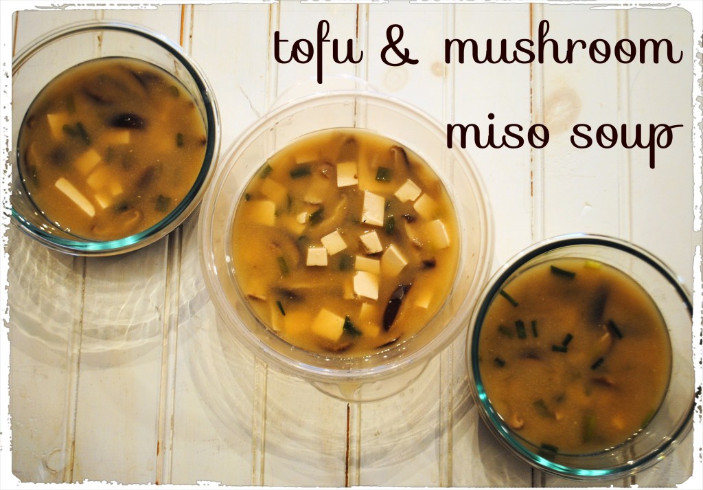 For lunch, I made Tofu and Miso Soup. This is a weight watchers recipe, but miso soup is pretty basic. I was looking for a recipe that used the miso and silken tofu I already had but didn’t require me to buy anything like seaweed or dashi granules (they’d just take up space on my shelf). This recipe fit the bill. It’s heartier than what you would get in a restaurant with a decent amount of mushrooms and tofu. I would suggest having something else with it as it may not hold you over until dinner. It’s really warm and comforting though for these cool January days.
