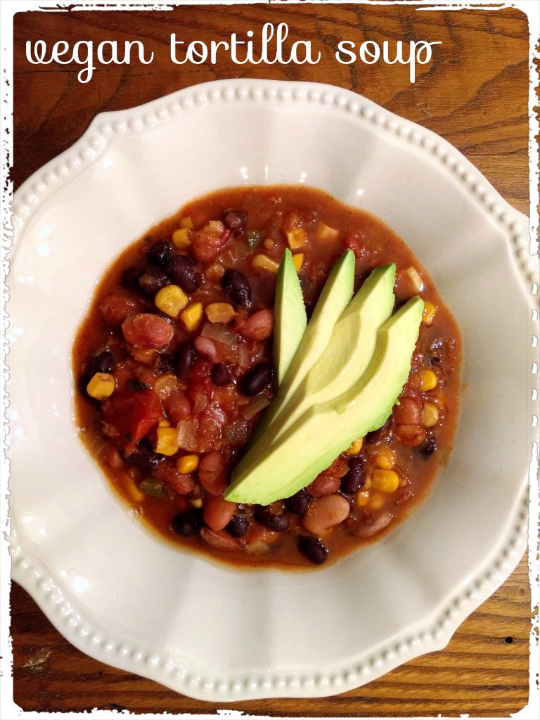 Dinner: Vegan Tortilla Soup. In full disclosure, this recipe needed some tweaking so this is more for your inspiration and not a recipe I recommend. I followed the recipe and found it really bland. I added an additional 1 TBSP of chili powder, 1 tsp of smoked paprika and another 1/2 tsp of cumin. Serve with your choice of toppings like avocado, salsa, vegan cheese or tortilla chips.
