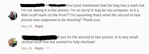 - Make sure the seller is including pictures of the actual item! A lot of times, sellers will include stock photos of the items that they are selling that they have pulled from the brand’s website. This is a great idea because it shows the item taken in a professional setting. BUT, that doesn’t mean that’s actually what the item looks like now. Even if it’s marked as Like New, don’t hesitate to ask the seller to include pictures of the actual items. You want to be able to see what condition the item is in, if it has faded or is discolored, if it looks really worn, etc. Don’t purchase the item if the seller doesn’t get back to you. That’s a red flag.
