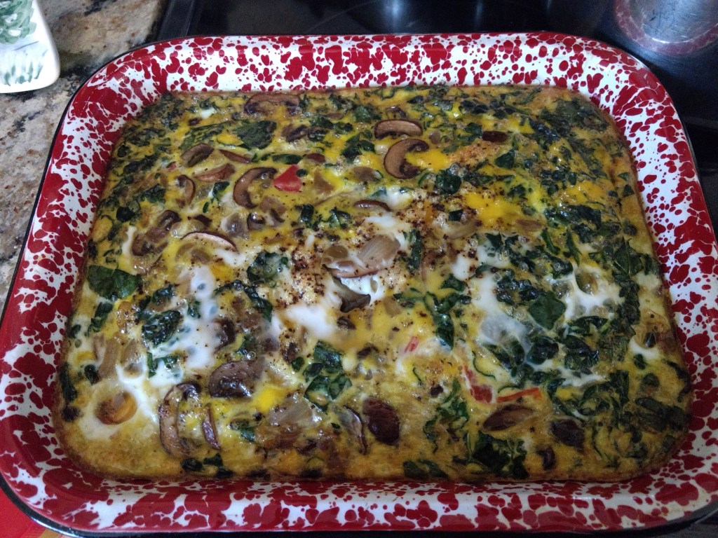 You can scramble up the eggs and veggies ahead of time and just pop them in the microwave each morning. I kept the avocado and tomato on the side so they wouldn’t be heated.