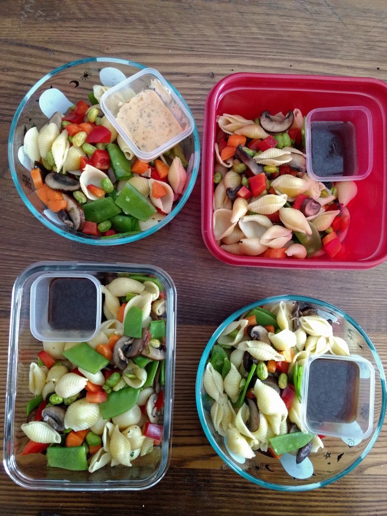 I’m still trying to be a little more conscious of what I have in my pantry and fridge when I go grocery shopping so this weeks meal prep was based on the fact that I had a fresh batch of sourdough rolls, some dry pasta and some edamame chilling in my freezer.