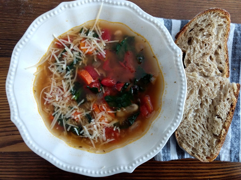 Lunch: Last week’s curry was so yummy! But, I’m back on the soup train this week. Soup is just so cheap, quick and easy! I noticed I’ve been eating a lot of chickpeas lately so I opted for a cannellini soup this week. This soup really is super cheap, easy and quick. For some reason, I thought it had carrots so I used two that were starting to look a little sad in my fridge. I also used kale instead of spinach for the same reason as I used the carrots. Soups are great for using up veggies on their last leg. Soup is so easy to make low waste as a lot of the ingredients can be bought fresh with no packaging or in aluminum cans.